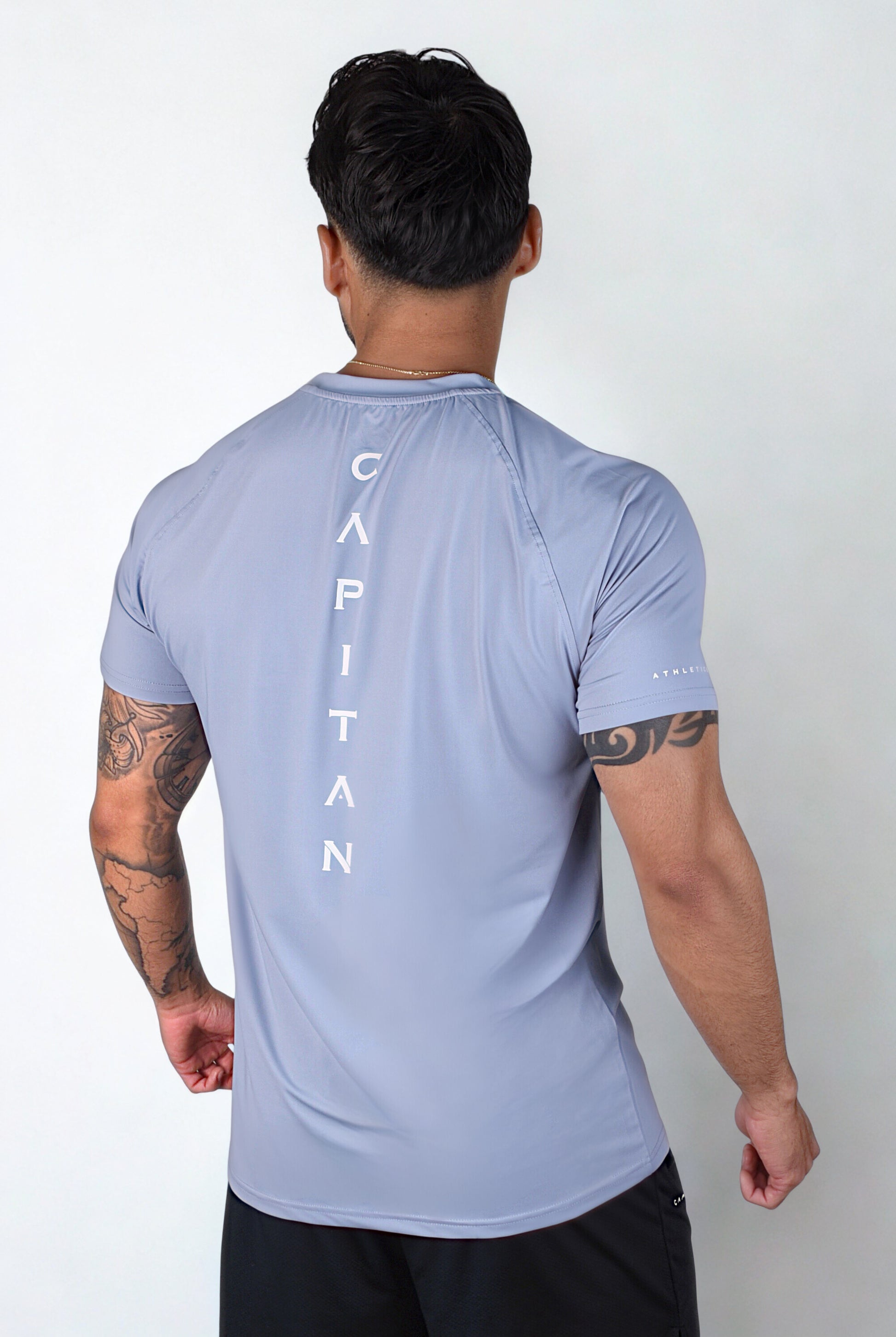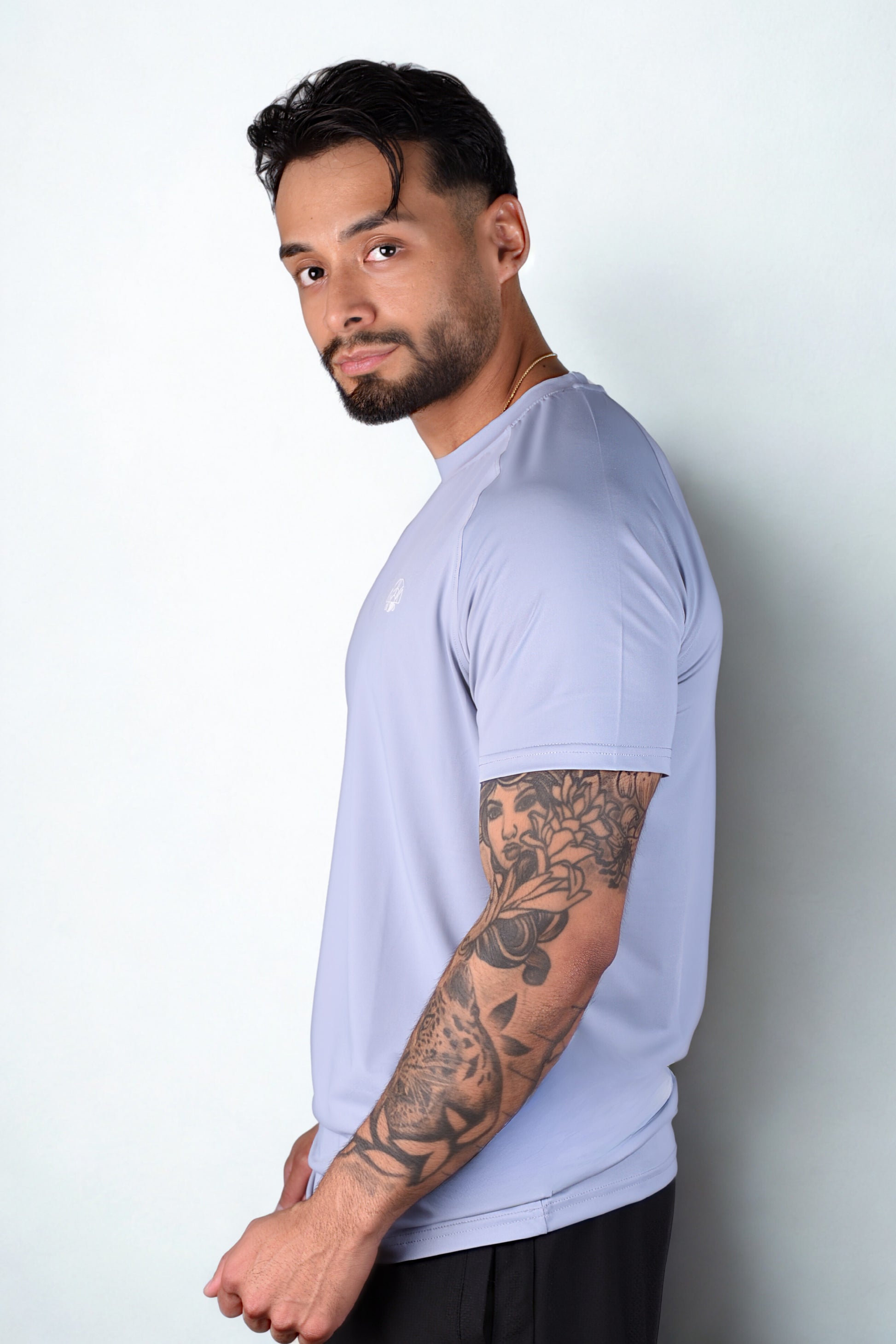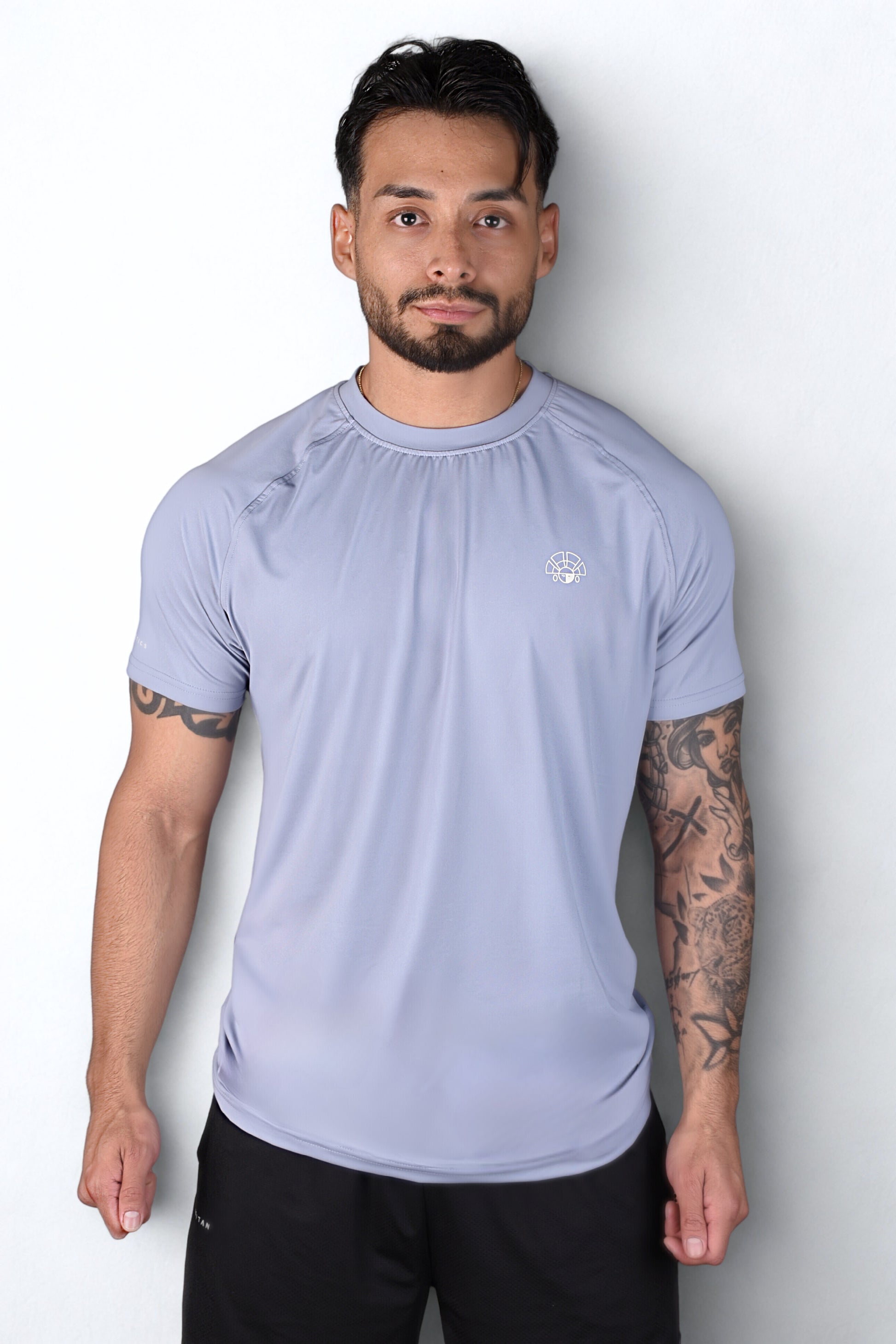 Stay cool and dry with our stylish performance-engineered T-shirt. Crafted from breathable, moisture-wicking fabric. Tight on the arms/chest and loose on the belly.